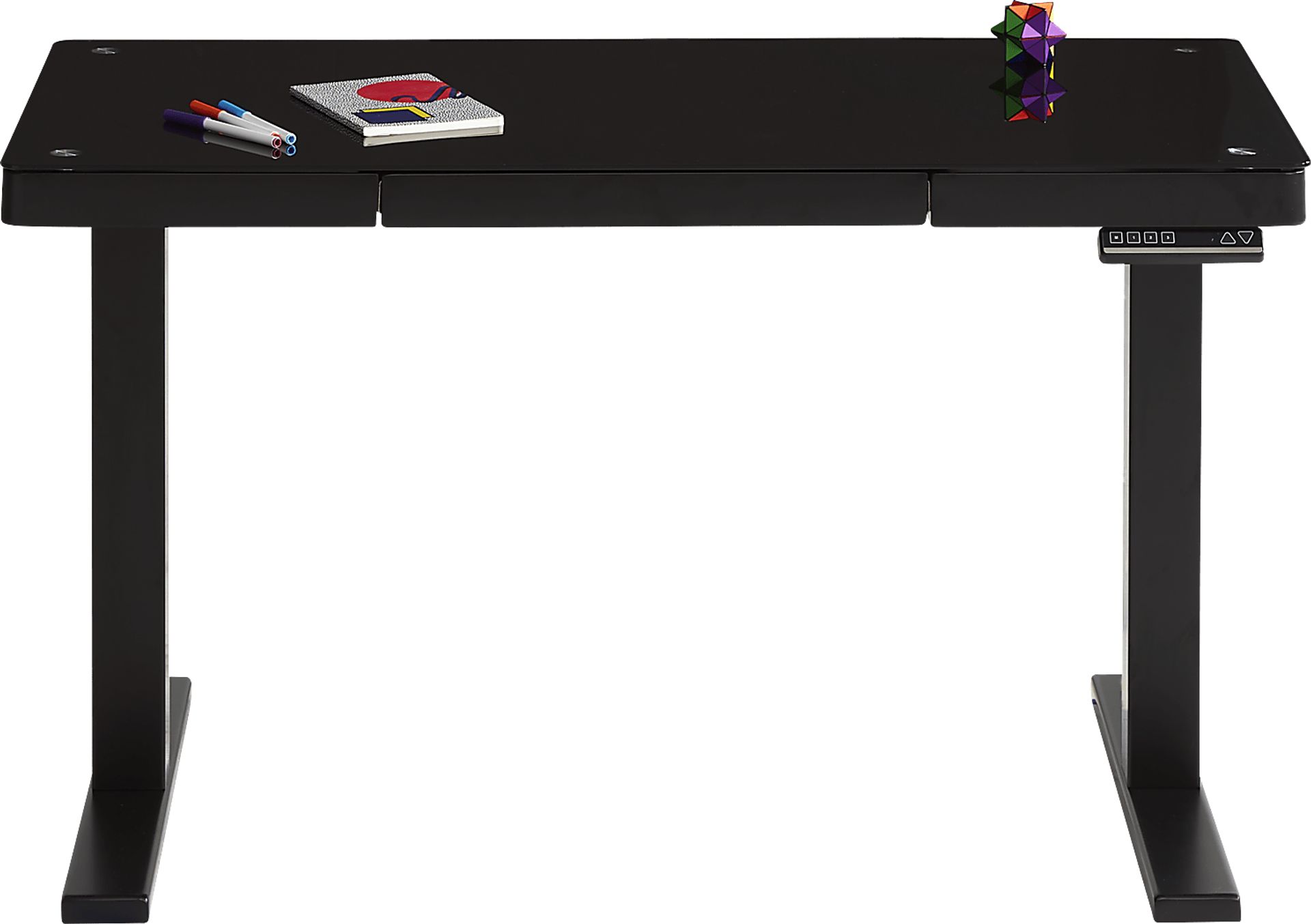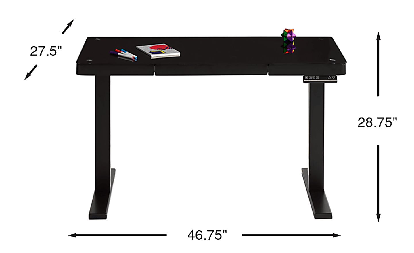 Studying comes easy with the Exeter Place Adjustable Desk. Perfect for all ages, this piece makes a wonderful addition to any room whether its for homework or decor. Conveniently located beside the control panel is a USB port for power within reach. Sleek and tucked away is a drawer for concealed storage. Great for sitting and standing, this desk reaches the minimum height of 27 inches and maximum height of 42 inches. Coated in a classic black finish, this desk pairs well with any room.