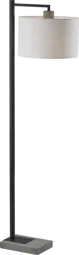 The Expedition Lane black floor lamp is the perfect way to soften an industrial styled room. A sharp silhouette is paired with warm grey cement accents and a white textured fabric shade. A simple rotary switch on the socket turns the lamp on, revealing the lamp shades beautiful texture. A sophisticated industrial ambiance will be reflected in your lovely home. Partial assembly may be required.
