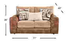 A warm silhouette gives way to a comforting embrace when you are enveloped in the friendly confines of the Exton loveseat, its attractive two-tone design providing an alluring invitation to relax and unwind. Upholstered in woven fabric, this contemporary seat boasts a padded outside back as well as wedge-shaped arms padded on both sides for added comfort and style. Included toss pillows provide rest time relaxation options, while cylindrical black legs add a touch of contrast to perfect the look. Upholstery 100% polyester.