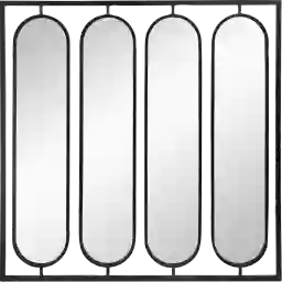 This unique design features four individual glass panels attached to swivels within the black iron frame. This allows you to customize the look of the piece: you can leave them flush for a classic flat reflection or tilt each panel to different angles. Angling the mirrors creates a multidimensional effect, reflecting light from various parts of the room and adding a contemporary, artistic layer to your wall.
