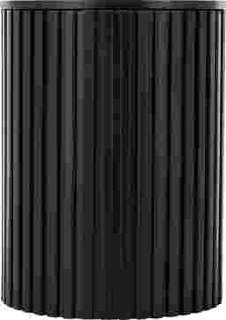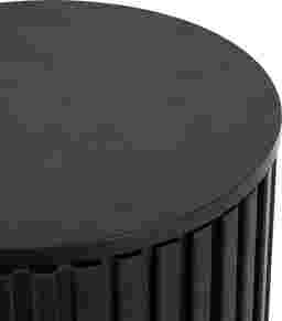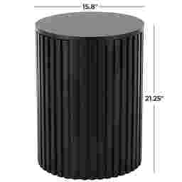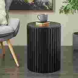 Inspired by sleek elegance and clean lines, a minimalistic design offers effortless luxury with monochromatic tones and bold, angular structures. The Eziro is crafted from high-quality wood and MDF, the brown side end accent table exudes durability and charm. The round table boasts a rich, oiled brown finish that enhances its natural beauty. The wood end table features ribbed detailing and a slatted base for added style. Customer assembly is required.