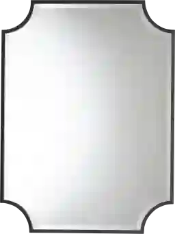 This mirror stands out due to its distinctive scalloped corners, which soften the traditional rectangular silhouette without sacrificing its clean, modern lines. The minimalist black metal frame provides a bold, high-contrast border that anchors a room’s decor. This "avant-garde" approach allows the piece to serve as a functional reflection point and a sculptural work of art simultaneously.