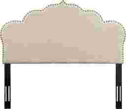 Your alarm clock is buzzing and you want to press snooze just one more time. Who could leave their stylish Fabrice beige king upholstered headboard and fluffy blankets for a cold floor? Stay in bed just a few minutes longer and enjoy the elegant curves and sophisticated nailhead trim. Assembly required.