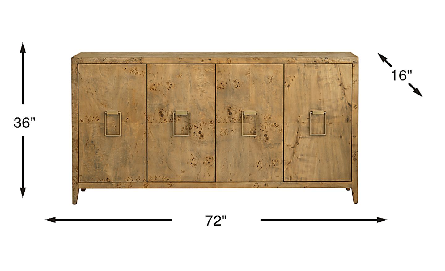 A great way to sharpen your home entertainment sphere, the Fairfield credenza offers an utterly enchanting storage solution. Crafted of mango wood solids, this piece features a lacquered finish that showcases the beautiful natural tones of striking mappa burl veneers. Pass through holes on the rear of the case make wire management a breeze while internal shelving helps with organization and storage. Brass-plated door pulls on the front of the credenza tailor the transitional look with a hint of sophistication.