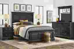 With the thorough care of a master craftsman and the humble grace to match, the Fairhaven bed offers reassuring solace and uplifting style in every curve, angle and detail. This modern farmhouse collection is crafted with birch veneers in black, each edge punctuated with decorative nail treatments. The top rails of the headboard and footboard feature cavetto-style trim, while scalloped feet provide a poised contemporary appearance. Mattress and foundation (if required) sold separately.