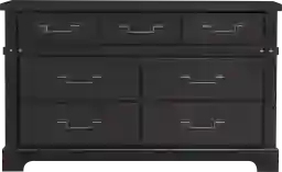 With the thorough care of a master craftsman and the humble grace to match, the Fairhaven dresser offers reassuring solace and uplifting style in every angle and detail. This modern farmhouse accent is crafted with birch veneers in black, each edge punctuated with decorative nail treatments. Seven drawers feature metal bar pull hardware in an antique brass finish, and scalloped feet provide a poised contemporary appearance.