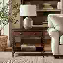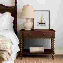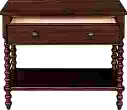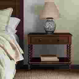 The Fairiprises brown nightstand offers more surface space and storage while maintaining its classic charm. Crafted from solid and engineered wood, it features a spacious drawer with two knobs for smoother operation and an open shelf to keep essentials within reach. Perfectly scaled for king and California king beds, it also works beautifully as a side table next to a sofa or in an entryway. With its timeless spindle-leg design, this versatile piece brings elegance and function to any space. Customer assembly is required.