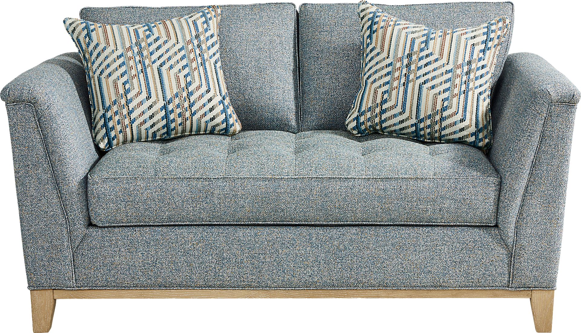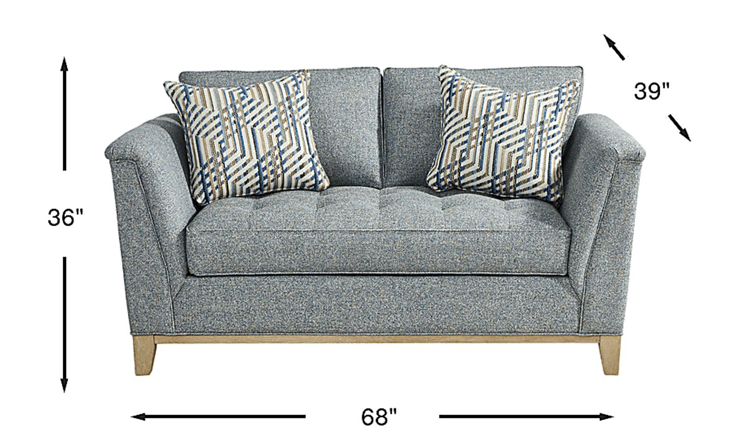 Whether you're entertaining guests or enjoying a quiet night in, the Fairmont loveseat from Cindy Crawford Home brings timeless charm and elevated comfort to your living room. Upholstered in soft woven blue fabric, this sophisticated piece blends classic elegance with modern simplicity for a captivating, versatile look. Gracefully tapered wedge arms and a tailored one-cushion seat create clean, sculptural lines. Loose back cushions and accent pillows finish the design with cozy, stylish appeal. Upholstery: 100% Polyester