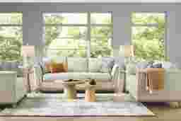 Whether you're entertaining guests or enjoying a quiet night in, the Fairmont collection from Cindy Crawford Home infuses your living room with timeless charm and elevated comfort. Upholstered in soft woven oyster fabric, this sophisticated set combines classic elegance with modern simplicity for a captivating and versatile look. The sofa and matching pieces showcase gracefully tapered wedge arms and tailored one-cushion seats, creating eye-catching lines wherever you look. Loose back cushions and accent pillows complete the look with cozy, stylish appeal. Upholstery: 100% Polyester. Cleaning Instructions: Use water based cleaning agents or foam. Lamps not as show in room image.