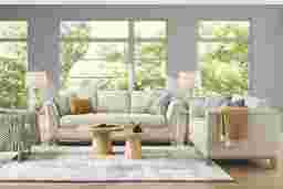 Whether you're entertaining guests or enjoying a quiet night in, the Fairmont collection from Cindy Crawford Home infuses your living room with timeless charm and elevated comfort. Upholstered in soft woven oyster fabric, this sophisticated set combines classic elegance with modern simplicity for a captivating and versatile look. The sofa and matching loveseat showcase gracefully tapered wedge arms and tailored one-cushion seats, creating eye-catching lines wherever you look. Loose back cushions and accent pillows bring cozy comfort and refined style to the design. The accent chair's blend of oyster, beige and cream adds rich texture and a subtle hint of modern flair for the perfect final touch. Upholstery: 100% Polyester. Cleaning Instructions: Use water based cleaning agents or foam. Lamps not as show in room image.