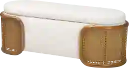 Employ an impression of rustic elegance in your space with the stunning Fairntosh cream bench. This piece consists of a sturdy wood frame padded with plush foam and upholstered in sumptuous boucle fabric. Its lift-top seat opens to reveal a spacious compartment perfect for storing pillows, blankets, and more. The Fairntosh features beautifully curved legs adorned with woven rattan for a touch of robust flair. Additionally serving as a fantastic footstool or extra seating, the Fairntosh completes any layout. Customer assembly is required.