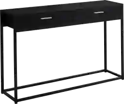 Boost the look of your entryway, hallway, living room or office space with this modern style, rectangular Fairwin console accent table with a chic industrial vibe. Made with high quality MDF material, the smooth laminated black top blends into the solid black metal square base with its clean minimalist lines. The two handy storage drawers on metal glides are perfect to store keys and paperwork, while the spacious table top can hold books, pictures, decorative objects, or a lamp. This versatile and functional console table will be the most useful furniture piece in your home today! Customer assembly is required.