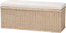 The vibrant Fairybite brown storage bench combines the grace of rustic artistry with functional seating. This bohemian piece is handcrafted from sustainably sourced natural rattan. Its lift-top opens to reveal a spacious storage compartment while a beautifully fashioned braided rattan trim distinguishes the crisp silhouette of the piece. The Fairybite will arrive fully assembled and is fitted with a removable cushion padded with plush foam and upholstered in sumptuous fabric. Rattan is a product of nature and may have variations in areas such as, but not limited to, color, pattern, grain and texture. The hair-like strands of rattan/rattan-fiber are common due to the nature of the material.