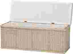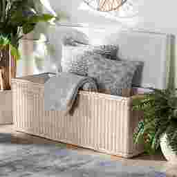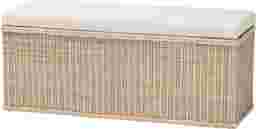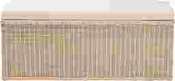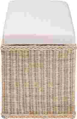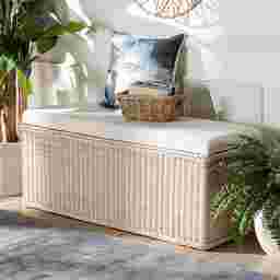 The vibrant Fairybite brown storage bench combines the grace of rustic artistry with functional seating. This bohemian piece is handcrafted from sustainably sourced natural rattan. Its lift-top opens to reveal a spacious storage compartment while a beautifully fashioned braided rattan trim distinguishes the crisp silhouette of the piece. The Fairybite will arrive fully assembled and is fitted with a removable cushion padded with plush foam and upholstered in sumptuous fabric. Rattan is a product of nature and may have variations in areas such as, but not limited to, color, pattern, grain and texture. The hair-like strands of rattan/rattan-fiber are common due to the nature of the material.