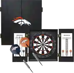 The Fan's Choice Denver Broncos bristle dartboard cabinet features your favorite team logo and includes a premium 18-inch tournament sized self-healing bristle dartboard. Self-healing bristle dartboards are some of the longest lasting boards on the market, since the holes close up after each dart is removed. This hanging dartboard cabinet will look great in your fan cave or any room that your family and friends gather. Secure the dartboard and you are ready to have hours of enjoyment. Customer assembly required.