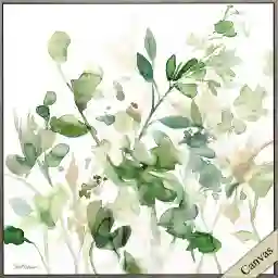 The Fannine is a sage green floral on a stretched canvas, that has been framed with a wood look molding. Customer assembly is required.