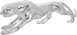 The decorative Farra I features a standing silver leopard sculpture. Depicting this animal in a prowling position showing movement. Hand cast in ceramic and resin. Features a striking silver plated finish.