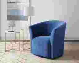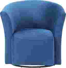 The Faranda blue swivel chair is a sleek accent chair for the fashion forward home. Boasting a stylishly curved back and chic flared arms, the Faranda is the perfect choice. Resting on a dark metal base, it allows you to rotate in any direction you please. This accent chair is dressed in a luxurious velvet fabric, instantly adding that modern glam style to your living room or bedroom. Add this swivel chair to your home today for a look that will never go out of style. Customer assembly is required.