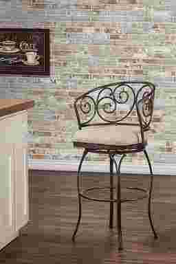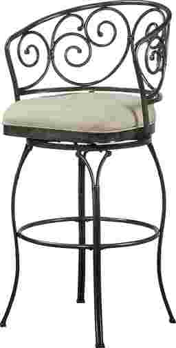 Featuring decorative scrolls and a charming rounded back, the Faren stool extends traditional style and comfort to your kitchen or patio for indoor or outdoor entertaining. Boasting a heavy-duty steel frame, a beautifully rich brushed pewter powder coated finish for extra durability and protection against harsh UV rays, a 360-degree swivel mechanism, weather resistant Sunbrella cast silver fabric, and a reticulated quick dry foam seat, this durable and attractive stool is ideal for your indoor and outdoor spaces. Some assembly required.