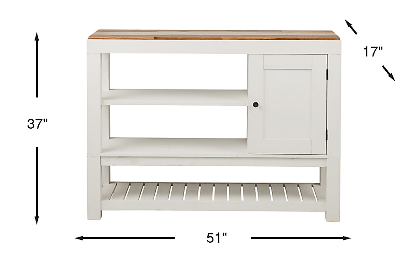 Complete your dining room with the versatile Farmington Hills sideboard. Three spacious shelves are ideal for displaying your favorite dishes, and behind the storage door, you'll find a shelf with two included rattan baskets for added storage. Crafted from acacia and acacia veneers with a brushed white finish, the top features solid acacia in alternating neutral tones.