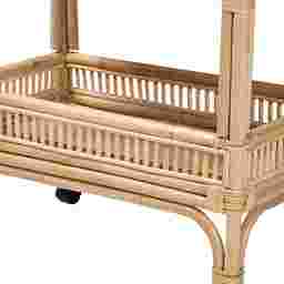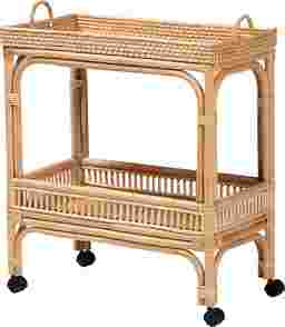 Nurture a tranquil ambiance in your space with the soothing tones of the Fasulo natural bar cart. This bohemian piece is handcrafted from natural rattan. The wide tabletop serves as a wonderful display area while the lower shelf conveniently organizes larger items. The Fasulo will arrive fully assembled and features caster wheels for easy mobility as needed. Rattan is a product of nature and may have variations in areas such as, but not limited to, color, pattern, grain and texture. The hair-like strands of rattan/rattan-fiber are common due to the nature of the material.