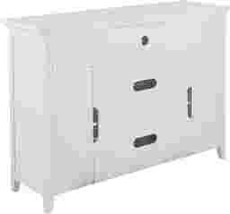 Warm up in cool, organized style. This multi use Faulkwood media fireplace adapts to your every whim with an interchangeable center drawer - simply remove and replace with the hinged barrister for a hidden media shelf. Louvered cabinets and carved drawer fronts add a touch of panache to the sleek, versatile silhouette. Turn on your home decor and employ this infrared fireplace TV stand in a family room or convert into a buffet sideboard in the dining room. Quickly warm up with supplemental heat for a room up to 400 square feet. Quartz infrared heat retains humidity for better atmospheric warmth. Easy-to-use remote controls heat, flames, logs, and down light. Energy efficient and long-lasting LED bulbs light the fire. Enjoy year-round, with or without heat! Customer assembly required. Customer assembly required.
