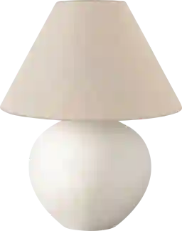Ceramic is favored in furniture design for its substantial, weighted feel. The globe-style base on this lamp provides a wide, centered center of gravity, which offers significantly more stability than narrow or spindly designs. While ceramic is a breakable material if knocked over, this low-profile, circular silhouette is less of a tipping hazard, making it a reliable decorative accent for busy living rooms or entryways.