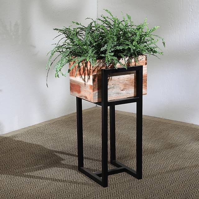 This Feldspark wood 14 square planter on metal base is sure to bring that nature feel to your home. Place your favorite planter on this planter. This will definitely make a great compliment to any home decor.