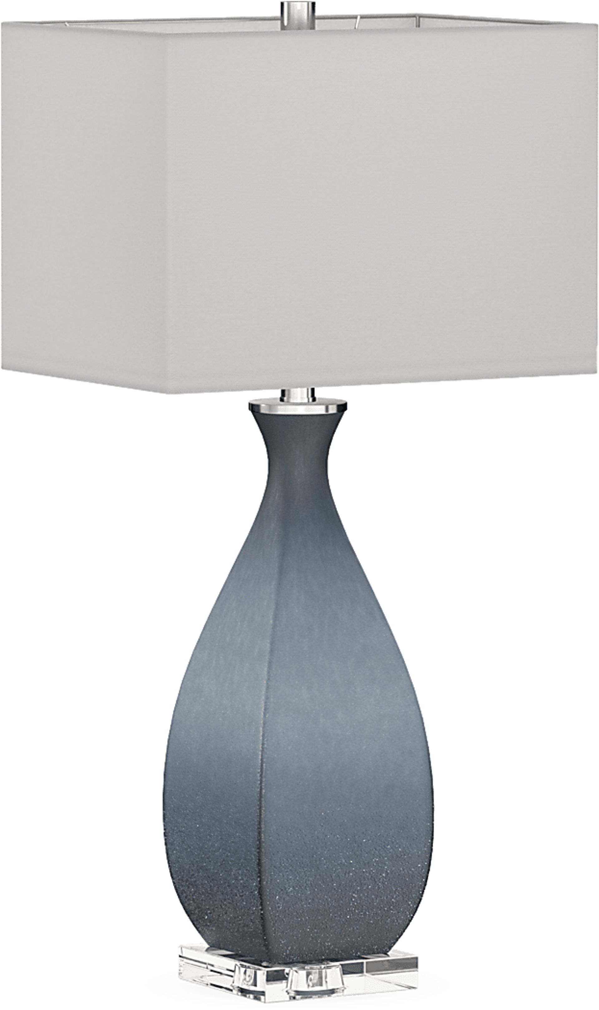 Reminiscent of deep blue sea glass, the Ferlita Point lamp illuminates any style profile with a cool, casual ambiance. Crafted of glass, this piece features a texture etched by acid with brushed nickel details and a thick crystal base. A white linen shade completes the look. The lamp, with a three-way socket switch, can accommodate up to a 150-watt bulb (not included).