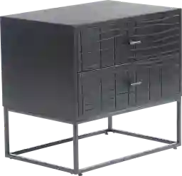 A slick black look. The Fichett nightstand features two sliding drawers with a textured detailing. A cool iron frame supports this minimal stand. The ideal stylish spot for a complementary lamp, candle, or cup of tea. Customer assembly is required.