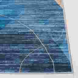 The contemporary abstract design acts as a sophisticated focal point that can pull a room's entire color palette together. The blue and gold tones add a sense of luxury and "class" to the space. In modern decor, this rug can be used to introduce visual movement and texture, balancing sleek, clean-lined furniture with its dynamic and artistic pattern.