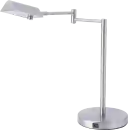 The lamp features a full metal base and frame, which provides the necessary weight and stability to support the adjustable arm at various angles without tipping. Metal construction is a durable choice for lighting, ensuring the joints remain secure and the finish maintains its integrity over time. To preserve the nickel finish, our care recommendations suggest using only a soft, dry cloth for dusting.