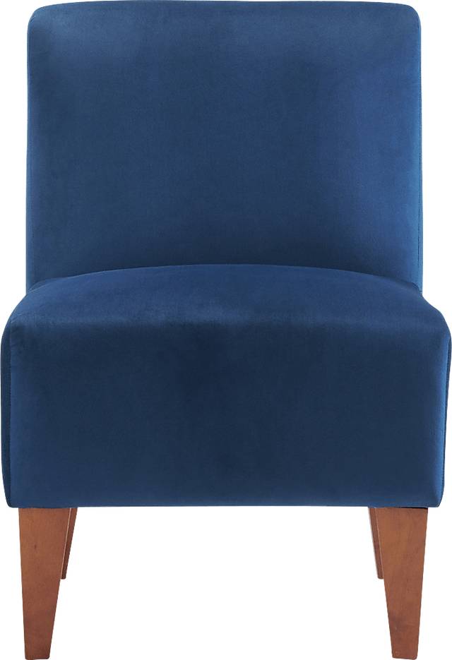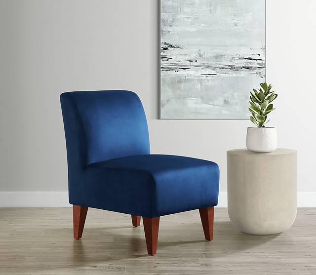The Fielden II blue accent chair is a charming slipper chair covered with a stylish fabric upholstery. Its chic armless design sits low to the ground, it the perfect complement to a dressing room or a seating area in your home. The soft, velvet fabric give you a look of that modern glam style that will instantly make your space feel chic. Add this accent chair to your home today for a look that you will love to come home to, day after day. Customer assembly is required.