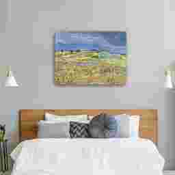 Fields of Wheat bold palette and dynamic composition evoke raw emotion and poetic beauty. The artwork's rhythmic lines and impasto technique create a powerful sense of motion and soul. Our gallery wrap canvas prints are proudly assembled with high quality materials in California, USA. Each piece is printed on a thick, archival grade canvas using Giclee technology. It is then hand-stretched by our experienced artisans over solid wood bars, which will not warp over time. The final product is a piece personally crafted for you to confidently display on your wall. Ensure that the location of your piece has little to no exposure to heat, sunlight, and moisture. Wipe clean, only if needed. Each piece includes a sawtooth hanger to hang on your wall. Customer assembly is required.