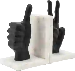 The Fieldswood bookends are a modern design that will accent any home or office. Aluminum decorative hand sign bookends 1 peace sign, 1 thumbs up. With realistic detailing and textural finishes throughout each hand, this bold tabletop accent decor is sure to spark a conversation. These saucy statues are the perfect finishing touch for a flawless home.