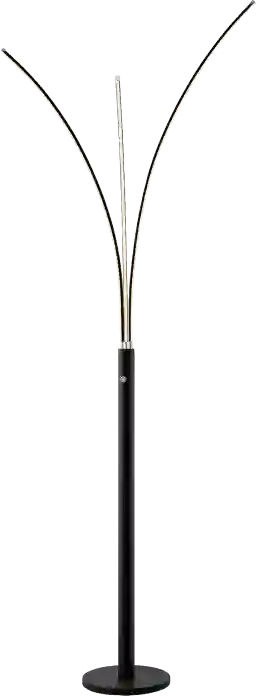 Despite its minimalist design, the Figpoint 3-light LED arch floor lamp will be the focal point of any space. It features a metallic black finish over metal construction, topped by a black aluminum and acrylic diffusers, but the prominent feature is its sleek, curved, wispy-thin silhouette. One touch switch located on pole provides 4-way dimming lighting control. It's an eye-catching design that looks great in a modern living space or a home entertainment room. Partial assembly may be required.