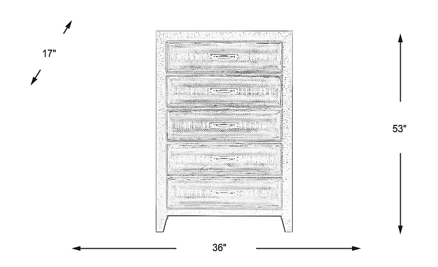 Offering a clean design, the Finlay chest delivers a rustic look that is both stylish and functional. Crafted of pine solids and acacia veneers, it features a rich espresso finish with fine weathered detailing. Metal pulls give this chest an industrial-inspired look. Five drawers provide ample storage for clothes, linens and other personal items.