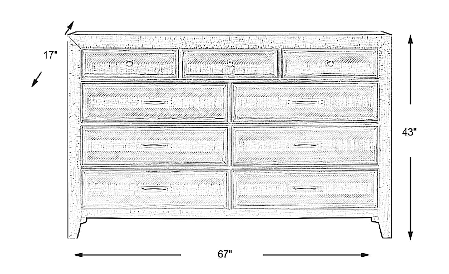 Characterized by rustic style, the Finlay dresser is a stylish staple for your bedroom. Crafted of pine solids and acacia veneers, it features a rich espresso finish with fine weathered detailing. Metal knobs and pulls give this dresser an industrial-inspired look. Perfect for keeping clothes and other items, nine drawers create a complete storage solution.