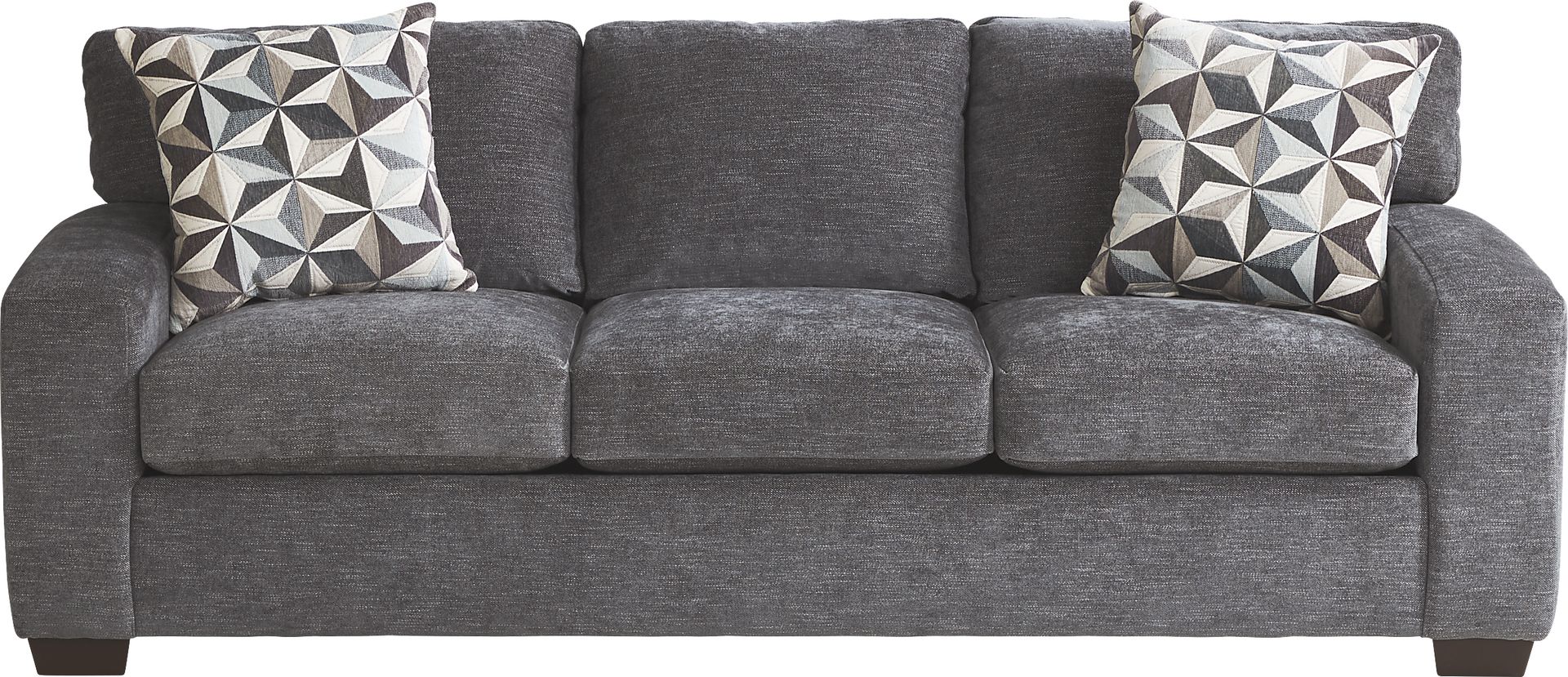Designed with modern allure and transitional style, the Finley Point sleeper sofa blends comfort with classic appeal. Upholstered in polyester fabric, this piece boasts a neutral granite color that complements any decorative palette. Loose seat cushions provide reversible usage and long-lasting style as plush back cushions offer soft support. Conveniently hidden, the sofa offers a queen size mattress for overnight guests. Curved track arms and jacquard accent pillows add a look of understated elegance. Upholstery: 100% Polyester