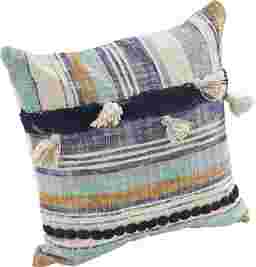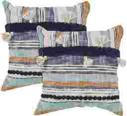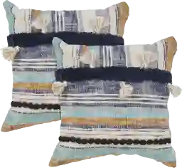 Decorate your space with this beautiful set of 2 Firdaus coastal throw pillows. Handmade from woven 100% cotton fabric, it boasts a tufted fringe & tassels for both quality and style. With a classic striped pattern, it blends effortlessly into your existing decor, while adding a fresh look. Perfectly placed on your sofa, chair, or bed, it is sure to add a beautiful pop of color and dimension. Poly inserts included.