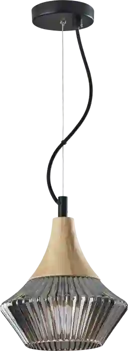 Beauty is in the details when it comes to the Fireside Gate pendant. From the ribbed, smoked glass shade to the natural wood that highlights the material's grain, to the stunning silhouette, every aspect of this light exudes elegance and style. Hang it by itself or pair it with several more to create a stunning effect and add illumination to your kitchen, dining area, bedroom, or bathroom. A 6ft. cord covered in black fabric allows you to adjust the light's height to suit the needs of any room. The black cord gently spirals down from the round, black canopy ceiling mount, while the light shade is also suspended by a discreet clear cord to ensure it hangs evenly. The shade features a natural wood base leading to smoked, ribbed glass that throws soft light from a 60W bulb. Professional installation by an electrician is recommended.