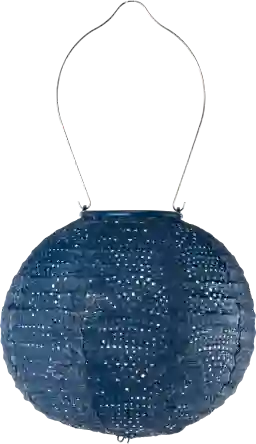 Created from ultra-durable Tyvek material and punched with intricate custom patterns, the Fiyga Edge outdoor solar lantern will turn itself on at dusk to cast captivating patterns of light each night. This blue lantern includes a stainless steel hanging handle, solar panel, a built-in light sensor, one AAA rechargeable battery, and a dual white LED light. Professional installation by an electrician is recommended.