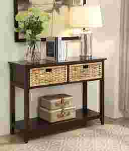 A stylish look for any room in your home, the Flavius brown accent table is an easy addition. This accent table has a rich finish and comes complete with two basket-like drawers. The drawers help to tame the clutter, while the bottom shelf provides additional storage and decor solutions. Some customer assembly required.
