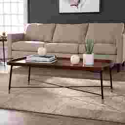 Don't cut corners with this Flicker Court rounded edge coffee table. A slender, X-frame base crafts mid-century style from the ground up, while gold-tipped feet cap off the look. Serve drinks and appetizers across the tray-inspired tabletop, while the minimal footprint easily slides into your studio apartment. Add this low-profile cocktail table to your living room or open concept floor plan,and enjoy big style without sacrificing space. Customer assembly is required.