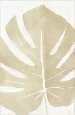 This rug serves as a sophisticated focal point, featuring a large, translucent leaf design by artist Yuyu Pont. The neutral color palette of sand, beige, and white is designed to reflect light, which helps make smaller rooms feel more open and airy. A unique hallmark of this collection is the artist's signature integrated into the print, providing the look of a custom, designer piece while offering the functional benefits of a power-loomed, performance rug.