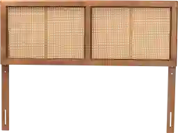 Add a vintage accent to your bedroom with the Flowerdale headboard. Comprised of sturdy wood showcasing a natural ash walnut finish. Woven synthetic rattan is embedded within the wood for an airy, mid-century look. This headboard is supported by sturdy wood legs that feature six pre-drilled holes for easy height customization. Providing superb back support when sitting up in bed, the Flowerdale headboard enhances any bedroom. Customer assembly is required.