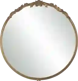 Accented with ornate details, this beautiful 28" Flurin round mirror is finished in an antique gold. A light gray glaze accentuates the details. Perfect in an entryway, over a vanity or over your favorite table.