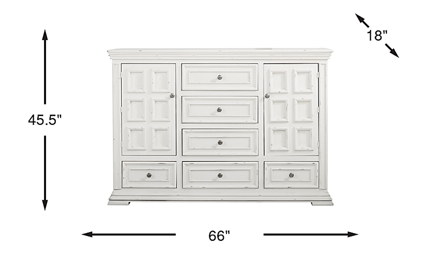Complete your bedroom with the Folkston Bay dresser. A perfect addition to any space, this rustic-inspired piece features six spacious drawers, including a felt-lined top drawer that prevents jewelry and other personal belongings from scratching. Tucked behind the doors are two shelves for additional storage. Pine veneers make up the construction as subtle distressing add texture to the transitional style. Pewter-finished knobs accent this piece, adding a refined touch.