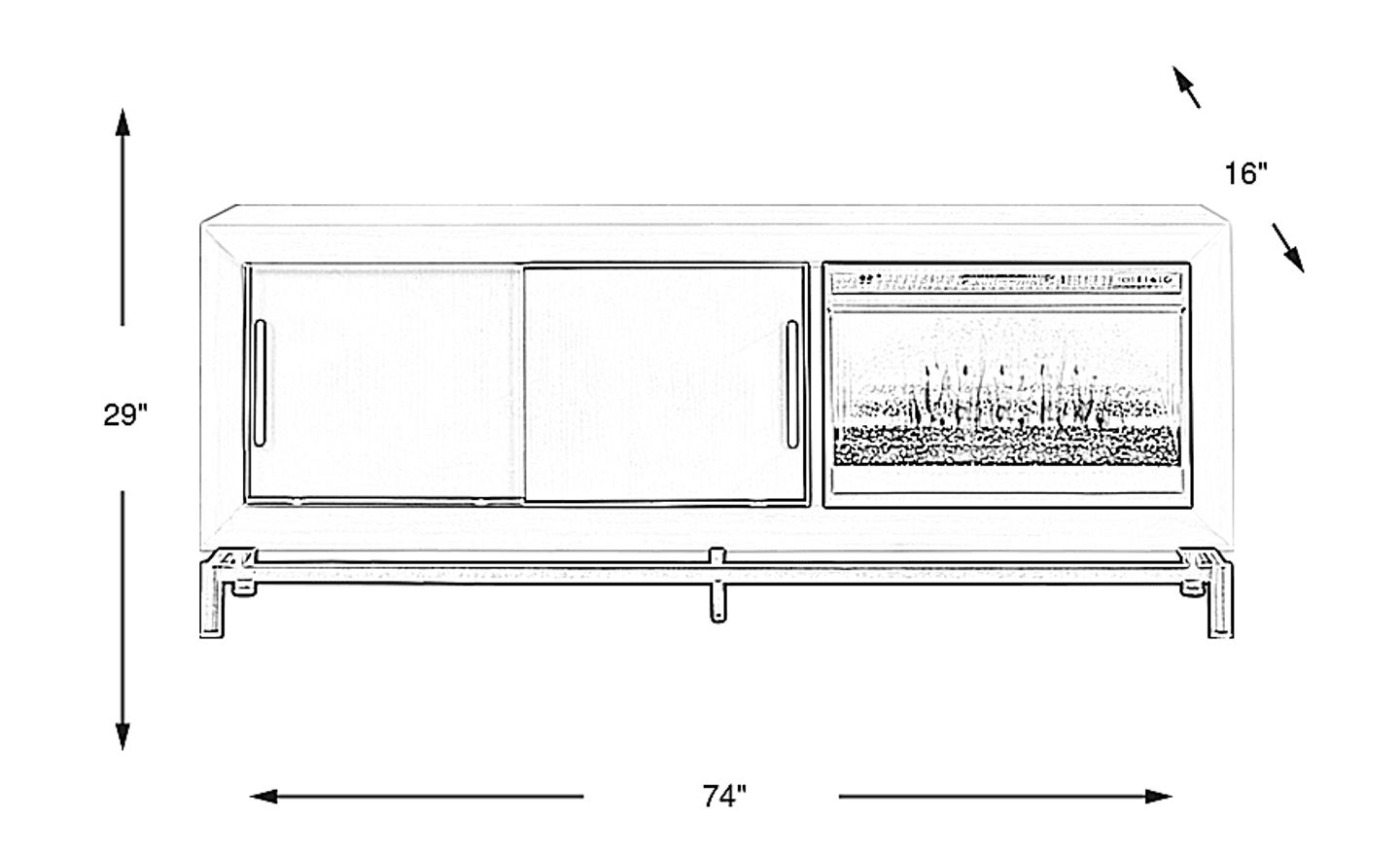74"w x 16"d x 29"h