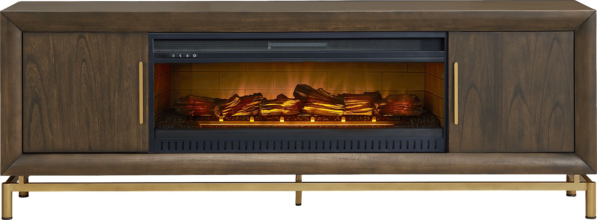 Fontaine Brown 84" Console With Electric Log Fireplace